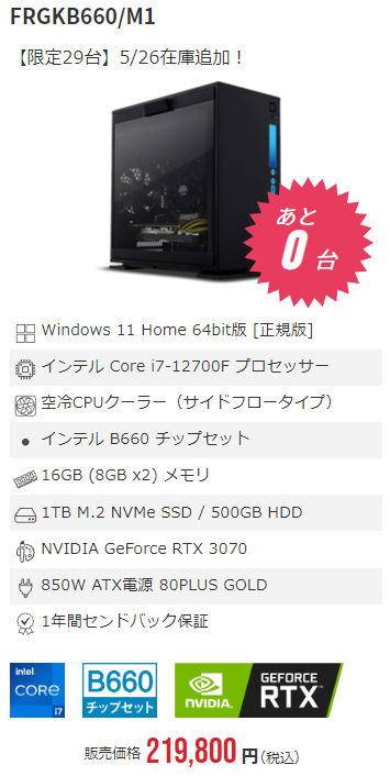 最新の12世代CPUと性能が高いGPUが搭載されて値段が抑えられています。