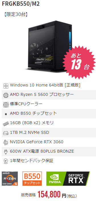 先ほどの『FRGKB560/M5』のCPUがRyzenに変わったモデルです。