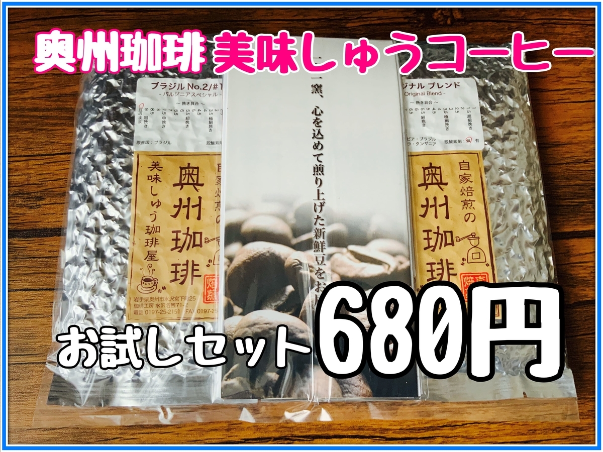 奥州コーヒーの美味しゅうコーヒーお試しセットを購入してみました。