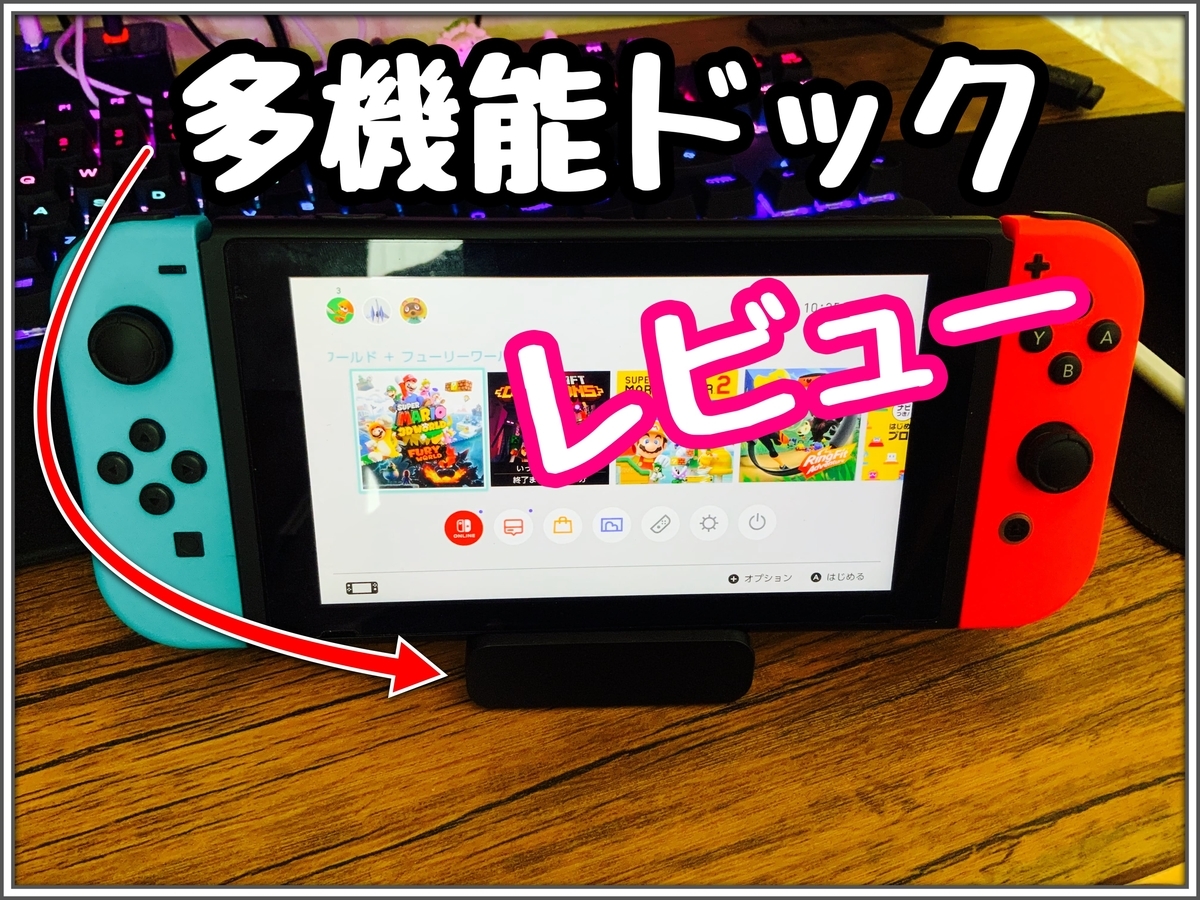 今回はPetasonien製の任天堂スイッチドックに任天堂スイッチを付けて